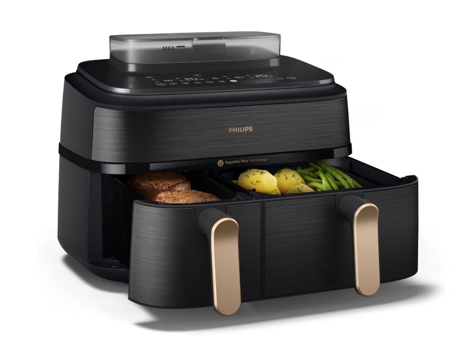 Este una dintre cele mai complexe friteuze din piață, funcționează cu aer cald și abur. Sunt 2 coșuri de gătit, iar capacitatea sa este de 9 litri (un compartiment de 3 litri și altul de 6 litri). Sunt 12 programe presetate, iar funcția de curățare automată cu abur ajută în igienizarea compartimentelor după utilizare. Au și aplicație dedicată de smartphone denumită HomeID.