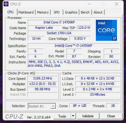 Mai sus găsiți valori de-a dreptul excelente pentru citire și scriere. L-am implementat pe configurația detaliată mai jos de către CPU-Z.