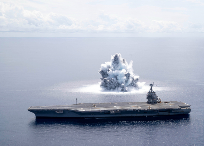 Însă, conform unui raport al Pentagonului ajuns în presă, USS Gerald R. Ford, o investiție de 13 miliarde de dolari a contribuabililor americani, riscă să devină cel mai scump mormânt de pe fundul Pacificului în cazul unui război cu China pentru protejarea Taiwanului.