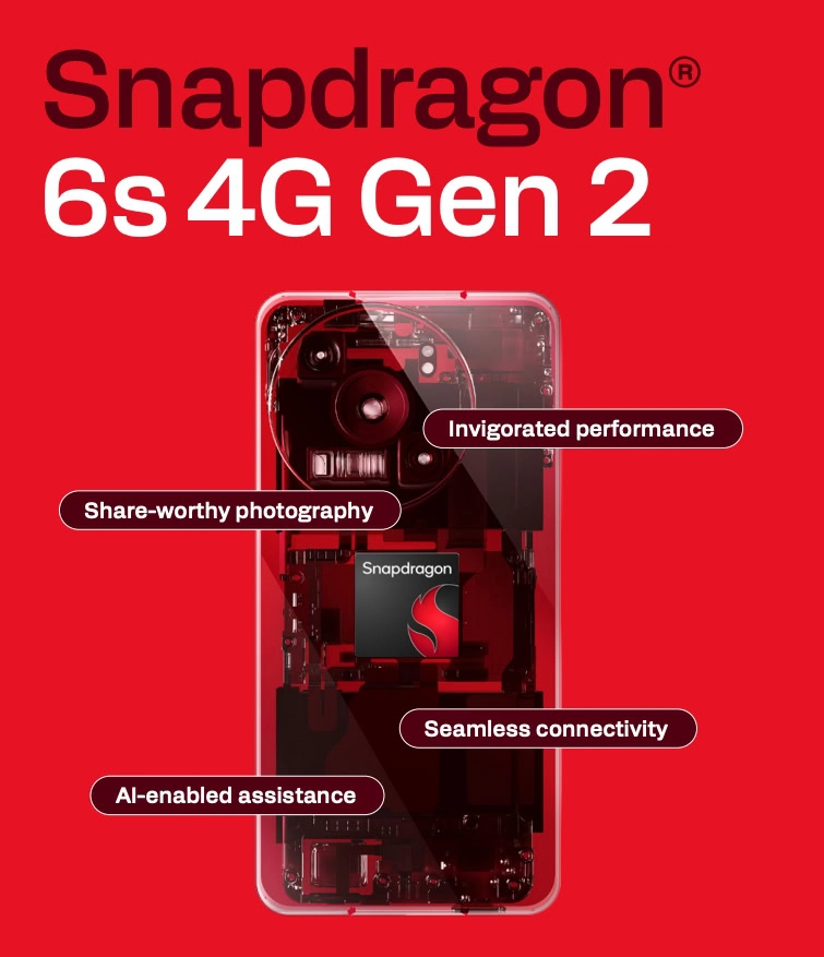 Procesorul Qualcomm Snapdragon 6s 4G Gen 2 oferă o frecvență de până la 2,9 GHz. Există și un GPU Adreno pentru nevoile grafice. Qualcomm susține că cipul oferă o performanță a procesorului cu 51% îmbunătățită și un GPU cu 20% îmbunătățit, comparativ cu generația anterioară. Acesta dispune de procesorul Qualcomm Hexagon, care este un NPU (unitate de procesare neuronală) pentru a gestiona sarcinile de inteligență artificială. Cipul acceptă RAM LPDDR4x și stocare UFS 2.2.
