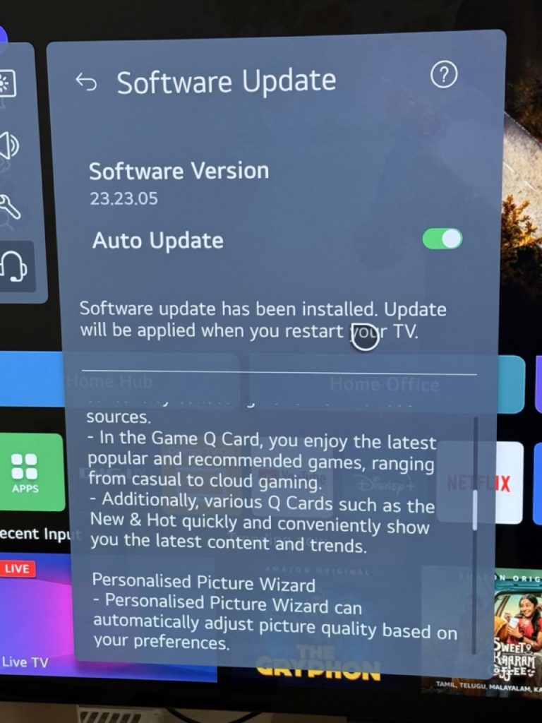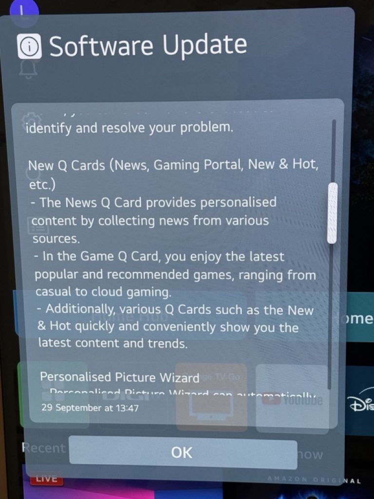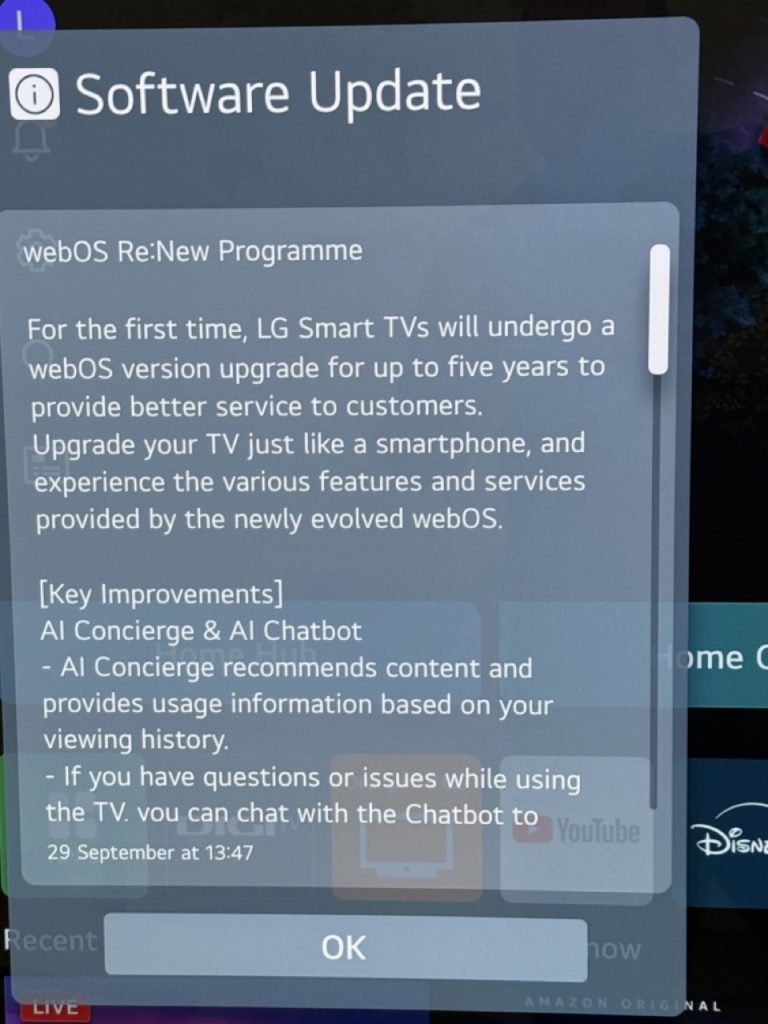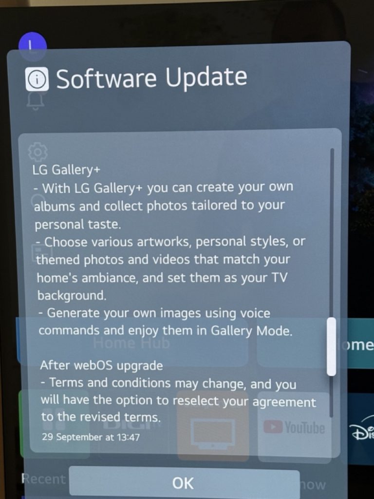 Azi dimineață am văzut că există o actualizare de firmware pentru telvizorul smart LG OLED C4 și că făcând parte din seria de actualizări de 5 ani, aduce schimbări majore, inclusiv AI Copilot.