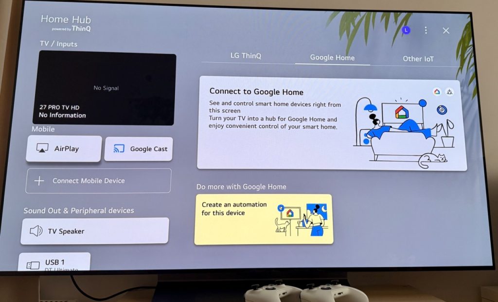 Acum avem și un tab dedicat Google Home în zona ThinQ.