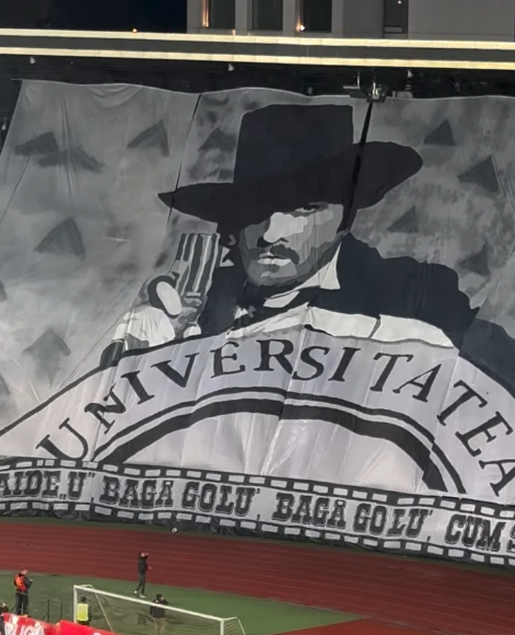 Florin Piersic, susținător al celor de la U Cluj, a fost prezent la meci, iar Peluza Șepcile Roșii” i-a pregătit o scenografie specială.