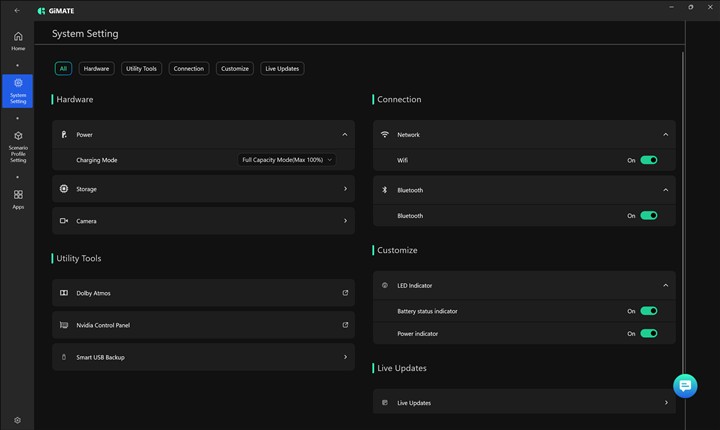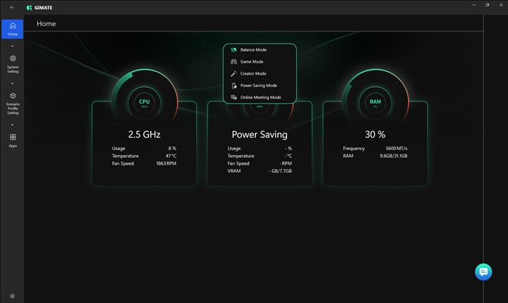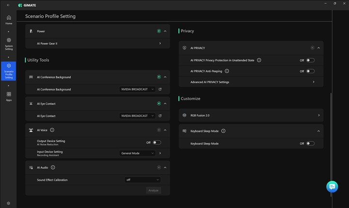 Aplicația GiMATE pe GIGABYTE AERO X16 Copilot+ PC (EG61H):