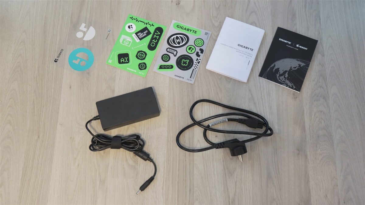 Laptopul a ajuns la mine în cutia de retail, în care mai este adaptorul de încărcare cu cablu separat pentru priză, mai multe abțibilduri, un ghid de pornire rapidă și certificat de garanție.