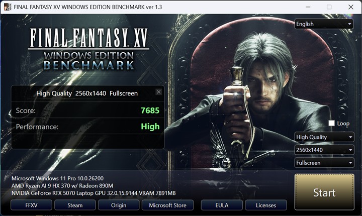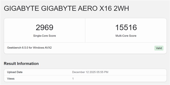 Teste de benchmark rulate pe GIGABYTE AERO X16 Copilot+ PC (EG61H):