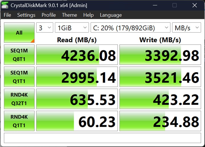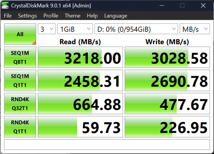 Pe partea de memorie, din nou bine, cu 32 GB DDR5 la 5600 MHz (2 x 16GB dual channel) montați din fabrică și posibilitatea de upgrade grație celor două sloturi dedicate. Cele două sloturi pentru SSD-uri permit și ele modificări ulterioare, upgrade-uri ale spațiului de stocare, dar trebuie să ții cont că, deși ambele sunt în format M.2 2280, unul este pe interfață PCIe 4.0 x4, celălalt pe interfață PCIe 4.0 x2. Nimic grav, dacă te gândești, întrucât SSD-ul mai performant va fi cel de pe care vei rula aplicațiile, iar pe celălalt îl poți folosi pentru stocare efectivă.