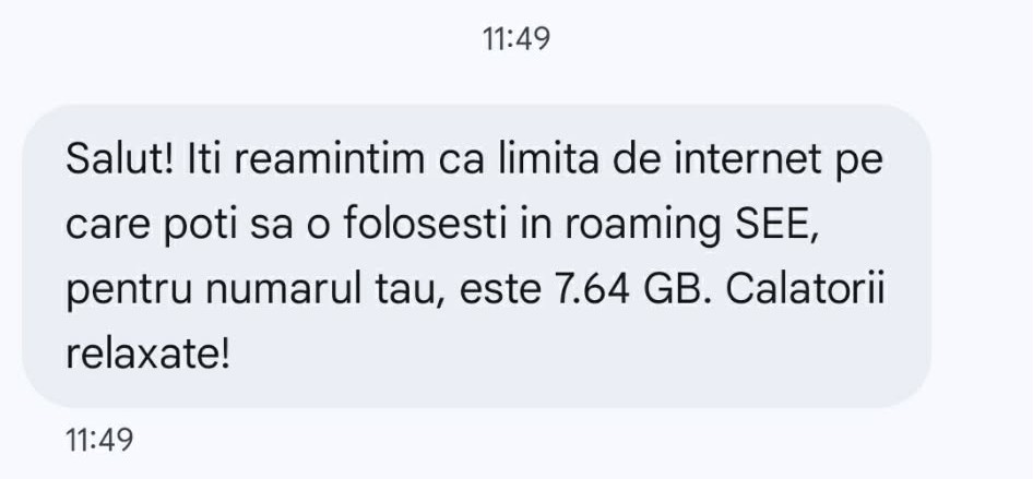 Toate SMS-urile şi notificările primite pe acest subiect stau la baza acestei explicaţii, adică operatorii telecom v-au informat câţi GB veţi primi în roaming SEE începând cu 1 ianuarie 2026 în baza formulei de calcul actualizată (mai multe resurse, în acelaşi cost).