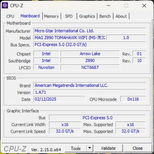 • Placă de bază: MSI MAG Z890 TOMAHAWK WIFI;