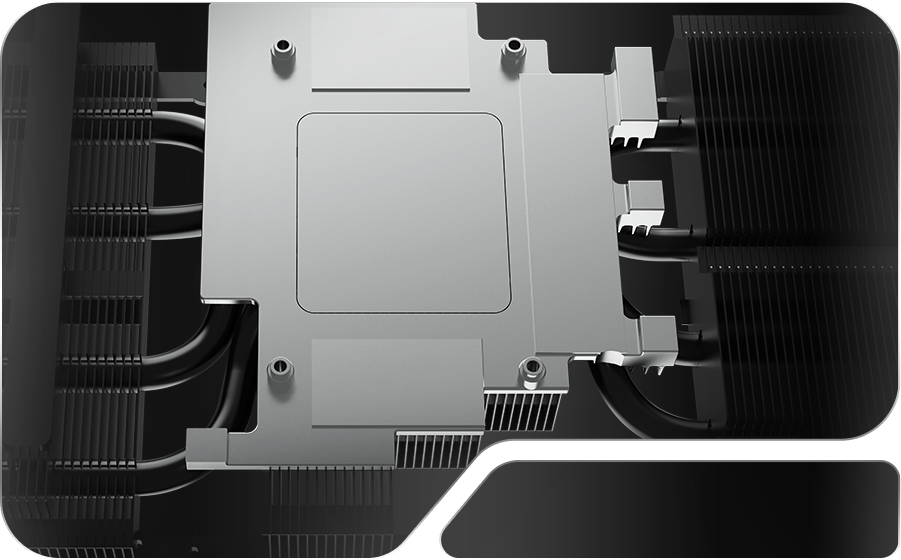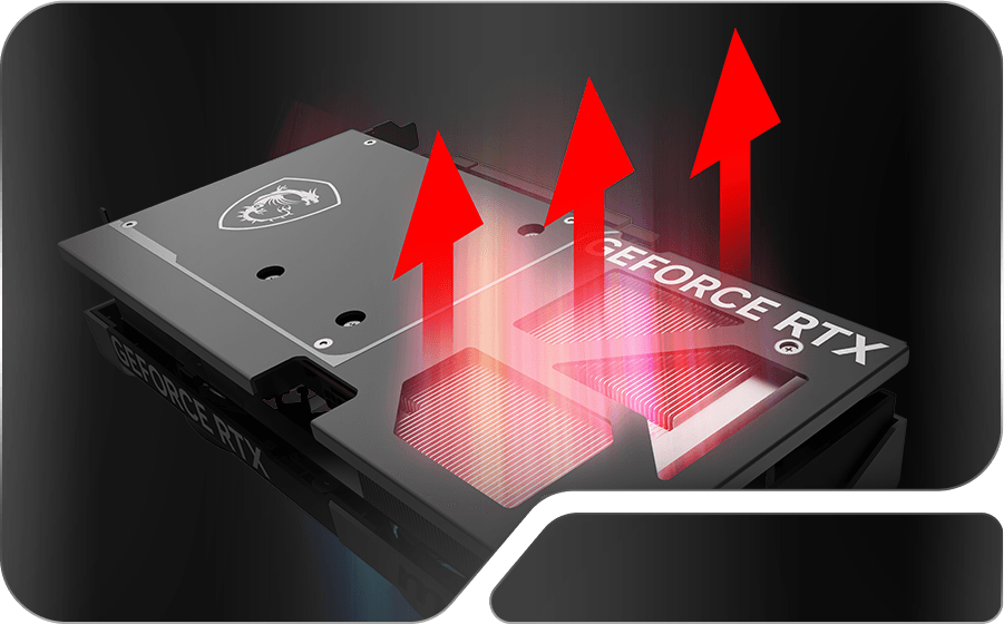 Sub ventilatoare, MSI a integrat o soluție termică avansată, bazată pe așa-numitele „Core Pipes”. Acestea sunt conducte de căldură prelucrate cu precizie milimetrică pentru a avea o formă pătrată în zona de contact, asigurând astfel o suprafață maximă de atingere cu GPU-ul și astfel o distribuție uniformă a căldurii pe întreaga lungime a radiatorului. Transferul termic este ajutat de utilizarea unor pad-uri termice de înaltă calitate, aplicate nu doar pe memorii și VRM, ci și pe componentele sensibile de pe spatele PCB-ului, permițând căldurii să fie disipată eficient.