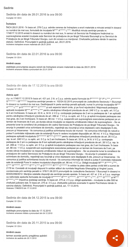 Prejudiciul cuantificat a fost de un salariu și jumătate al omului, respectiv 1470 lei. Am avut parte în cursul judecății de 4 complete de judecată, ultimul complet, cel care m-a condamnat în prima instanță, a intrat la un singur termen, nu m-a audiat, nu a asistat la administrarea probelor și nici la audierea martorilor, ci a rămas direct în pronunțare.
