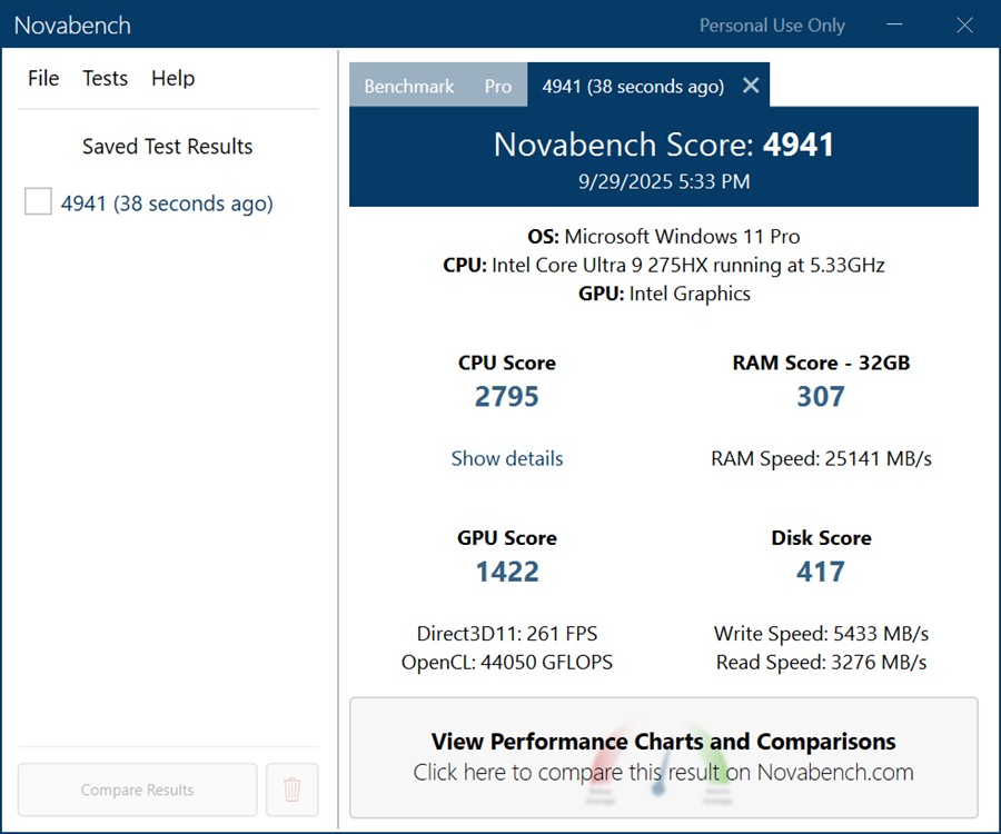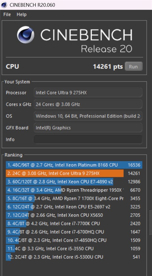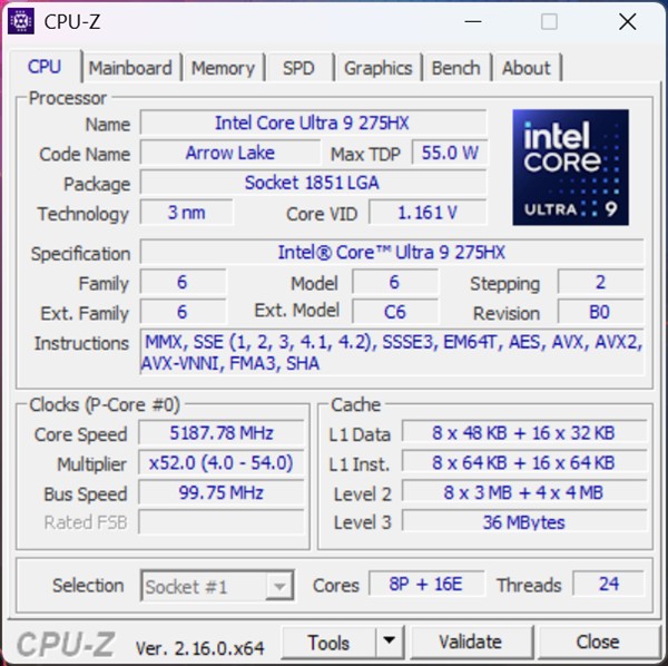 Ecran Mini-LED de 16 inch, rezoluție 2560 x 1600 pixeli, 188 ppi, aspect 16:10, 240 Hz, 3 ms, 100% DCI-P3, 1100 niți luminozitate maximă în HDR, 500 niți luminozitate maximă în SDR Procesor Intel Core Ultra 9 275HX, 24 de nuclee cu 8 Performance-cores la maxim 5.4 GHz + 16 Efficient-cores la maxim 4.6 GHz, 24 fire de execuție, 40 MB total L2 Cache, putere de bază 55W, putere maximă 160W, temperatură maximă de operare 105 grade Celsius
