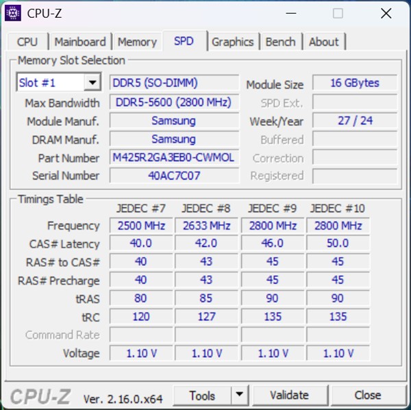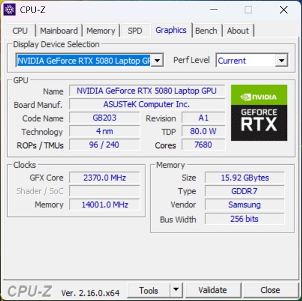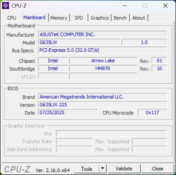 Capturi de ecran din CPU-Z cu informații despre ansamblul hardware integrat de ASUS ROG Strix Scar 16 2025 (G635L):