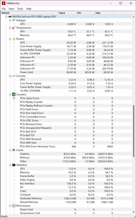 După ce am rulat absolut tot ce era de rulat, am extras capturi de ecran și din HWMonitor, de unde ne sunt puse la îndemână multe informații prețioase.