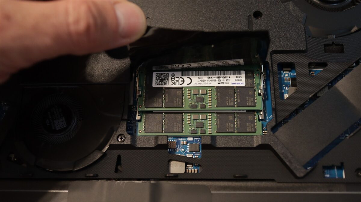 Ai acces și la memoria RAM, care și ea poate fi schimbată în doar câteva secunde. Foarte bine pe partea de upgrade la acest laptop.