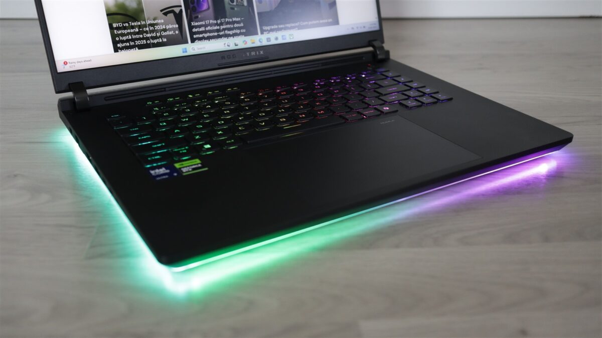Aici nu s-a făcut rabat la mai nimic. Avem CPU extrem de potent, un GPU dedicat dintre cele mai performante (există și opțiuni ASUS ROG Strix Scar 16 2025 cu RTX 5090), memorie RAM suficientă (cu posibilitate de upgrade foarte simplu) și un SSD… bun. Da, corect, aici se putea unul pe PCIe 5.0, vedem că avem slot M.2 doar pe interfață PCIe 4.0 x4, așa că îmi retrag parțial afirmația de la începutul acestui capitol.