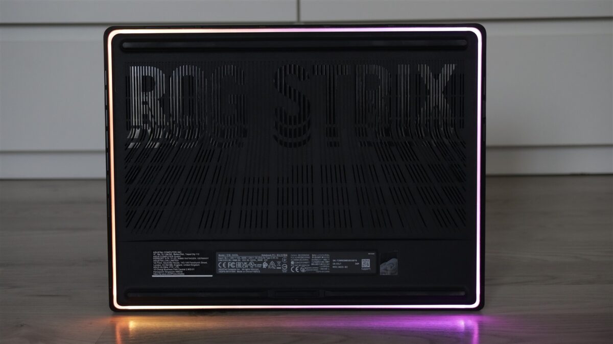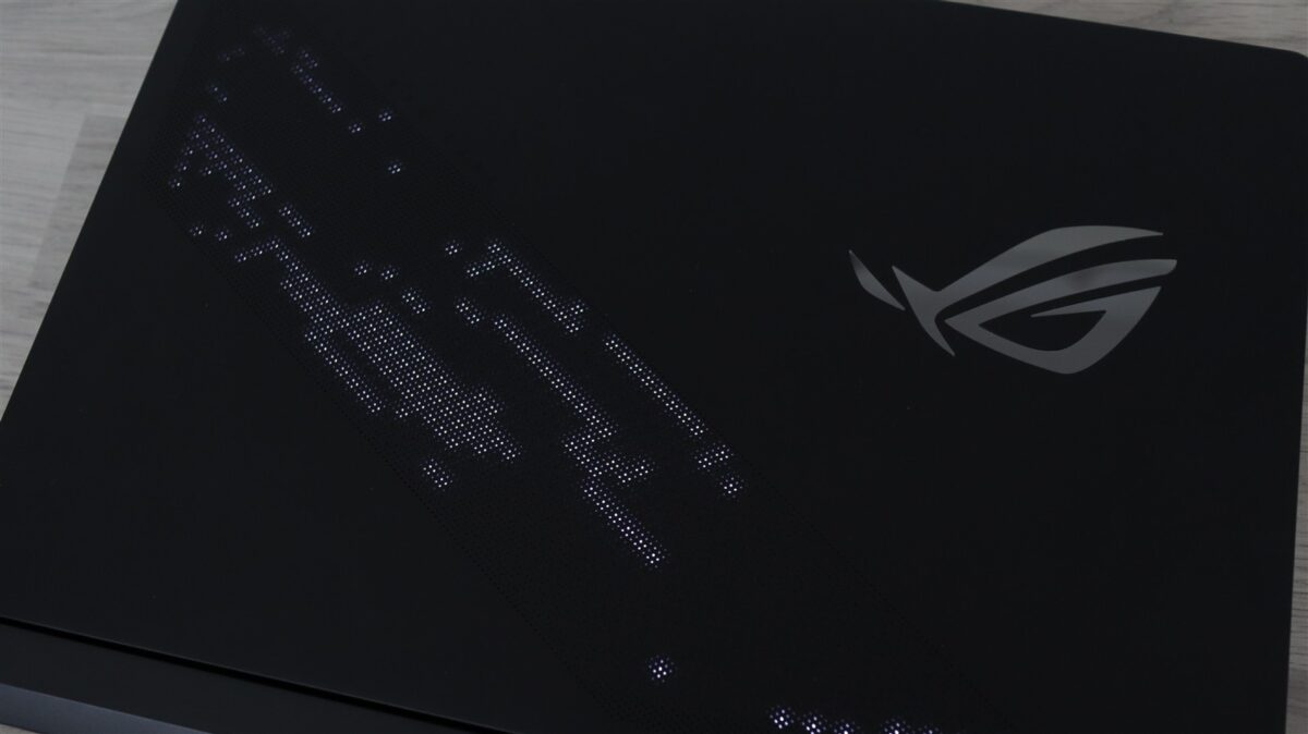 Fără discuție, ASUS ROG Strix Scar 16 2025 (G635L) este un laptop de gaming care își dorește din tot dinadinsul să atragă atenția asupra lui. Dispune de AniMe Matrix cu 8353 de orificii din spatele cărora luminează 810 LED-uri, ce pot forma mesaje personalizabile sau fel de fel de animații și tot pe capacul ecranului mai vedem și logo-ul  ROG, iluminat RGB. Notebook-ul are și o bandă RGB ce se întinde de jur-împrejurul zonei de jos a laptopului, iar tastatura este și ea iluminată RGB per key, deci personalizarea poate fi dusă la un cu totul alt nivel prin prezența atâtor elemente cu fel de fel de LED-uri.