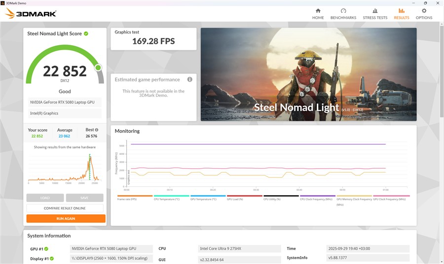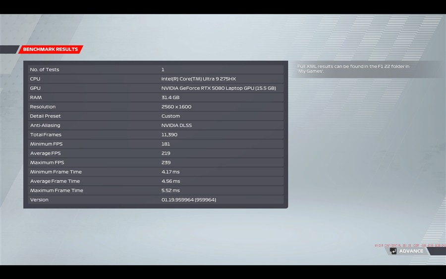 Aparte de testele de mai sus, l-am pus pe ASUS ROG Strix Scar 16 2025 (G635L) la lucru și în trei jocuri, iar cum se descurcă laptopul în Black Myth: wukong, Cyberpunk 2077 și F1 22 puteți observa din capturile de ecran de mai jos.