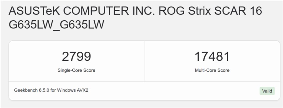Teste de benchmark rulate pe ASUS ROG Strix Scar 16 2025 (G635L):