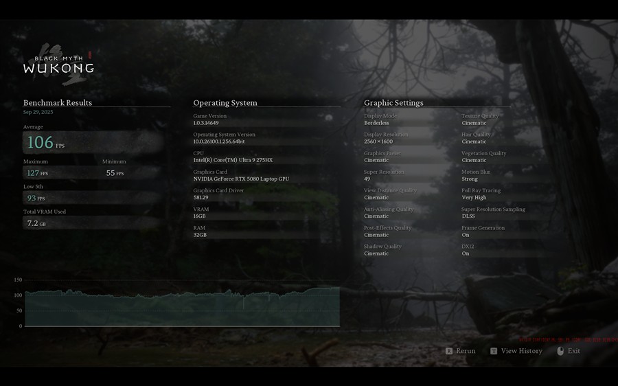 🔺Peste 100 fps în Black Myth: Wukong, la rezoluție 2560 x 1600 pixeli și cu toate detaliile la maxim…
