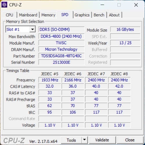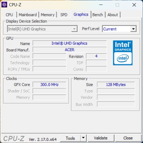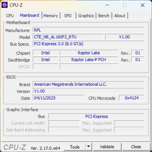 Capturi de ecran din CPU-Z cu informații despre Acer Aspire Lite 16 AL16-54P: