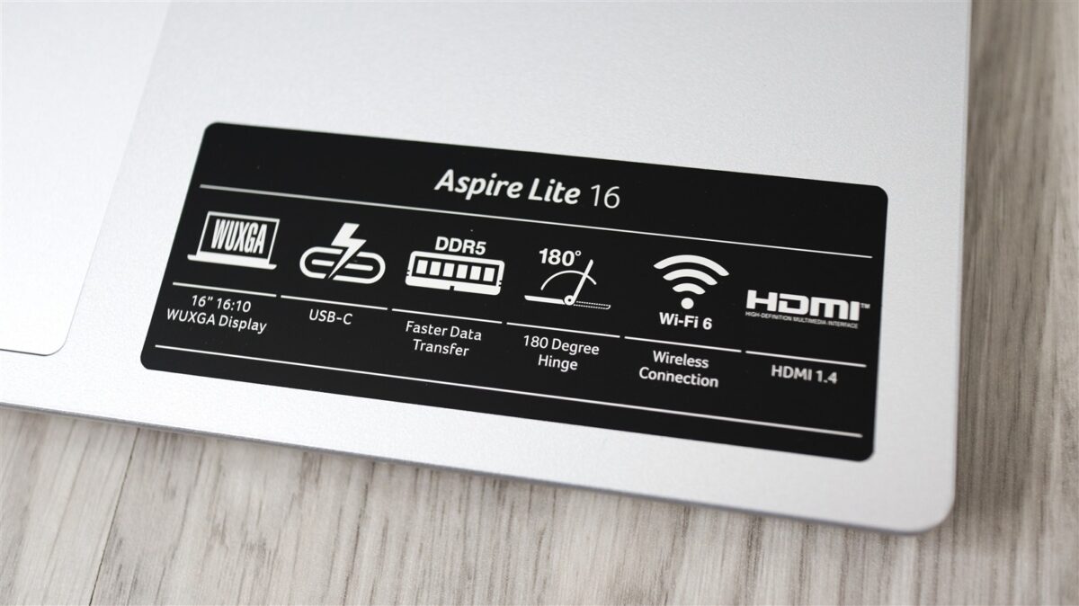 Laptopul este destul de subțire, având puțin sub 19 mm, și nici greutatea nu trece de un prag psihologic, să-l numim, adică rămâne sub 1.5 kg. Deși pare realizat la exterior din aliaj metalic, impresia pe care o poate lăsa culoarea argintie, Acer Aspire Lite 16 AL16-54P întreaga carcasă din plastic, spre a ține sub control costurile. Chiar și așa, nimic grav pe partea de construcție, laptopul este mai mult decât decent asamblat și finisat, cu toate că rigiditatea structurală nu pot spune că este dintre cele mai ridicate. Atât capacul ecranului, foarte subțire de altfel, cât și baza cu tastatura pot flexa cam tare, deci laptopul este cam flexibil.
