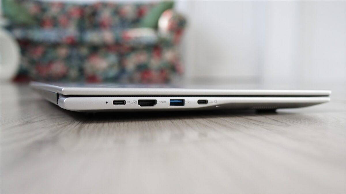 În ceea ce privește zona de conectivitate, Acer Aspire Lite 16 AL16-54P se prezintă peste așteptări. Dacă pe partea wireless nu este neapărat ceva special, având totuși Wi-Fi 6 (ax), dual-band pe 2.4 și 5 GHz, și Bluetooth 5.1, la porturile fizice laptopul stă nesperat de bine. Ep laterala din stânga avem 2 x USB-C 3.2 Gen1 (ambele suportă alimentare), 1 x USB-A 3.2 Gen1 și HDMI, pentru ca pe laterala din dreapta să apară un al doilea USB-A 3.2 Gen1, port Ethernet RJ-45, jack audio combo de 3.5 mm (ieșire sunet + intrare microfon) și un slot pentru carduri microSD.