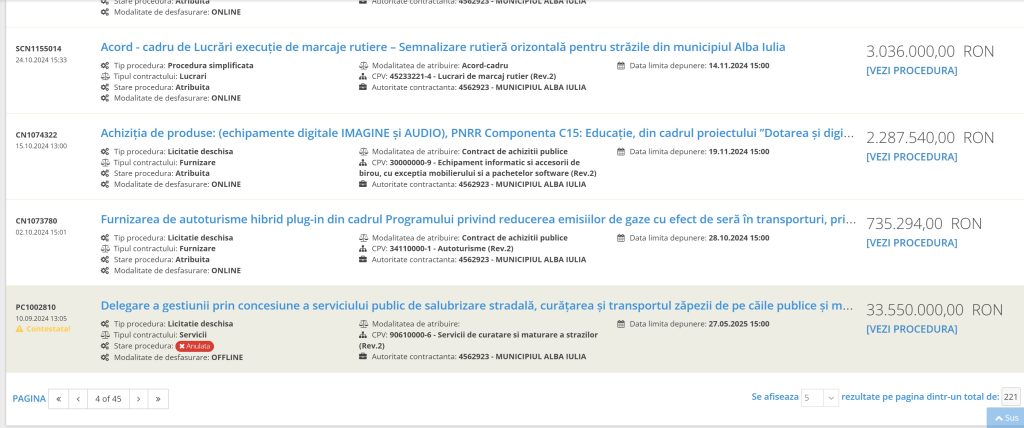 Drept urmare contractul era unul cu miză mare. La licitația lansată în SEAP pe 10 septembrie 2024 au participat mai multe firme, a precizat pentru alba24.ro, Claudiu Nemeș.