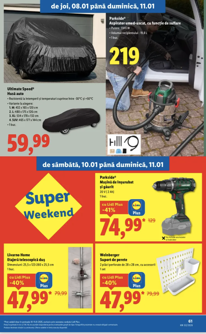 Veți descoperi prin magazinele LIDL de la o husă auto și un aspirator umed și uscat până la o mașină de înșurubat și găurit, dar și un…, suport de perete. Aspiratorul umed / uscat este ieftin și are capacitate mare de 19.8 litri.