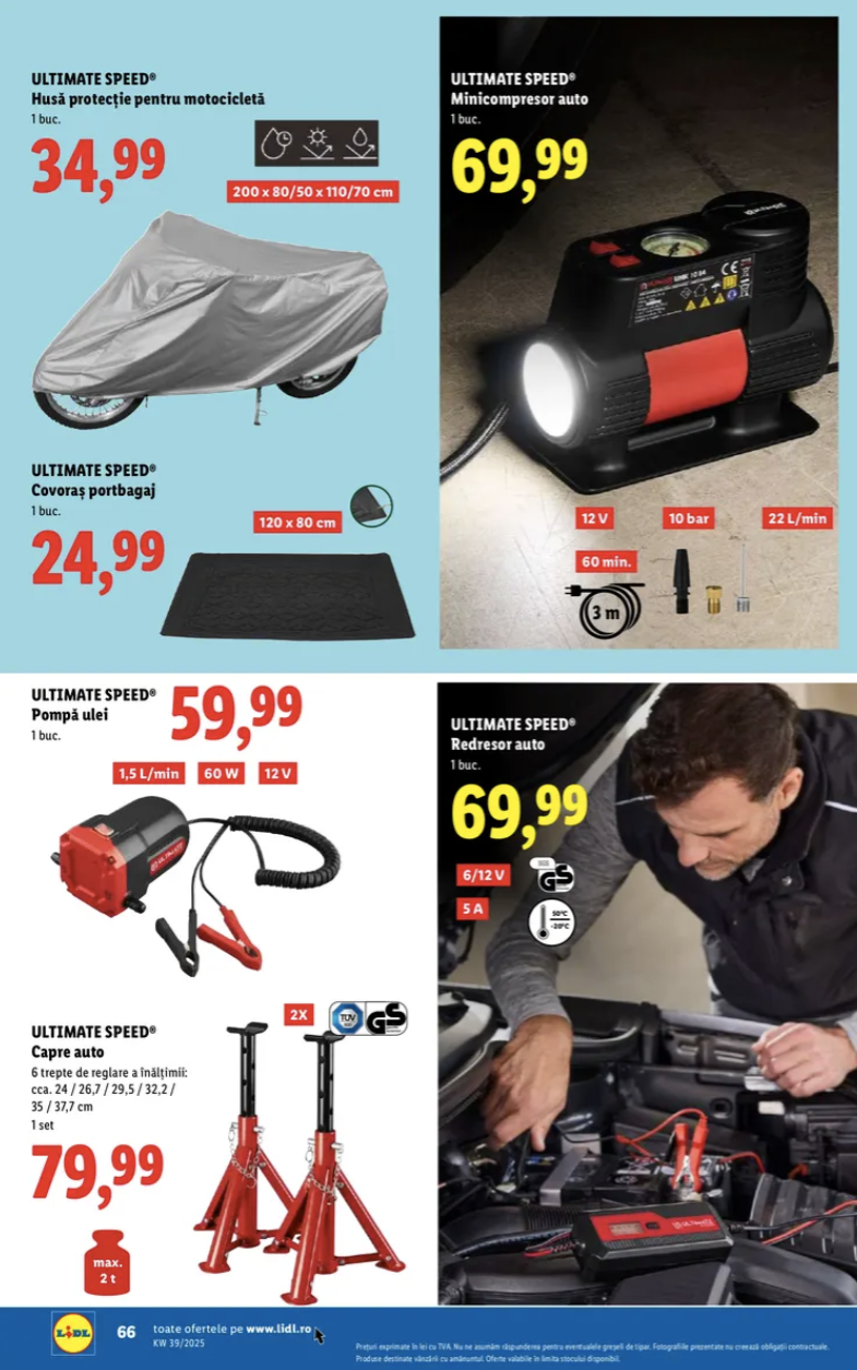 Au listat de la un redresor auto și până la un minicompresor auto. Găsiți printre altele chiar și o pompă de ulei cu alimentare la 12V, capacitate de 1.5 litri / minut. Minicompresorul are puterea de 22 litri / minut, funcție de lanternă și vine cu mai multe accesorii ce-i cresc opțiunile de utilizare.