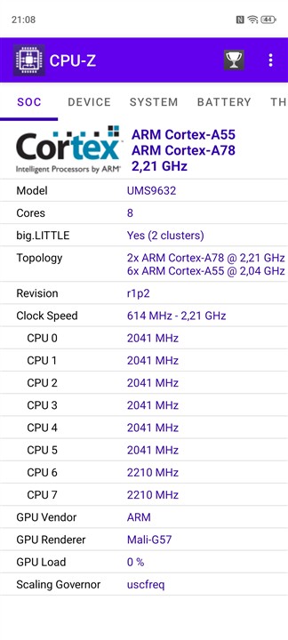 ZTE nubia Air a primit un chipset modest, dar care, în definitiv, este ceea ce te-ai aștepta la acest nivel de preț. Evident că ar fi fost ideal să vedem un procesor realizat pe 4 nm în locul celui Unisoc T8300 pe 6 nm, dar cum ai mai putea ține sub control strict prețul?! Acceleratorul grafic este un Mali-G57 MP2, oarecum potrivit spre a susține CPU-ul, dar care nu poate face minuni în jocuri și aplicații 3D ceva mai complexe. Ansamblul CPU + GPU poate rula orice joc sau aplicație din Play Store, dar cele mai grele vor avea nevoie de mult timp de încărcare și nu vor putea fi afișate la detalii înalte, cel mult acceptabile.