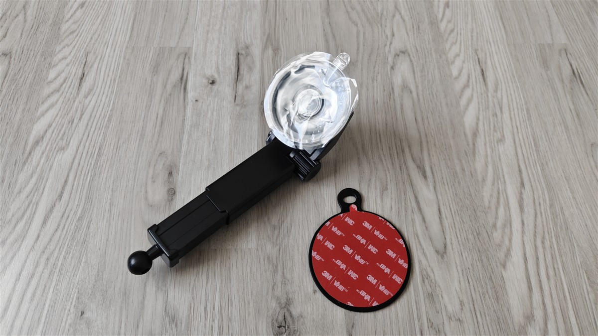 Separat, așa cum am spus, mai apare un suport pentru prindere de parbriz, adică cu ventuză. Acesta poate fi prins și de un suport separat, ce poate fi lipit pe bord, iar apoi ventuza să fie fixată pe acesta. Suportul are un braț extensibil iar de CarpodGo T3 Pro se atașează tot prin prinderea cu bilă, ce permite și reglaj suficient de extins.