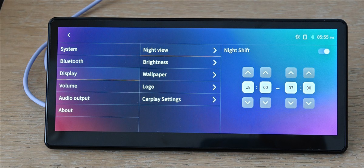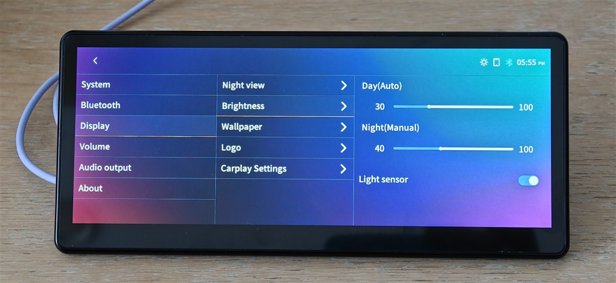 Apoi, este de menționat faptul că sistemul dispune de două moduri de afișa: de zi și de noapte. Pentru fiecare poți seta un anumit nivel maxim de luminozitate, dar și un program predefinit – la ce oră să se activeze automat modul de zi, respectiv cel de noapte.
