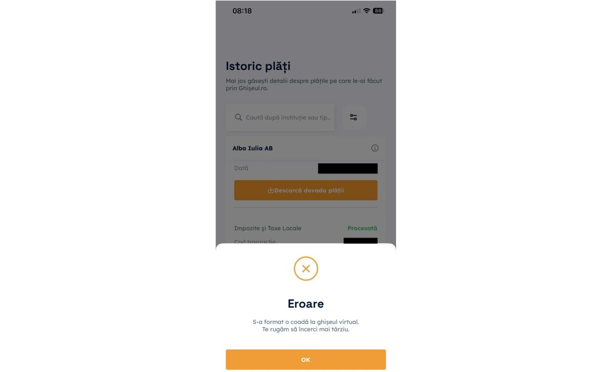 Albaiulienii care au accesat aplicația mobilă au primit temporar mesajul „S-a format coadă la ghișeul virtual. Te rugăm să încerci mai târziu”.