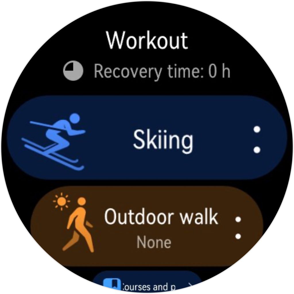 O să încep cu ce mi-a plăcut la ceas: activam monitorizarea activității fizice în cabina cu care urcam pe pârtie și cu toate astea timpul de poziționare a fost extrem de mic, în câteva secunde avea poziția. Pornirea monitorizării se face de pe ceas – apeși pe rotiță, Workout și apoi Skiing. Înainte să fac asa am verificat că e activă opțiunea Auto-lock screen (din meniul Mistouch prevention asociat activității de schi). Treaba asta face ca ecranul să fie blocat automat și să nu te trezești că butoanele se apasă aiurea (se poate întâmpla) și monitorizarea e oprită.