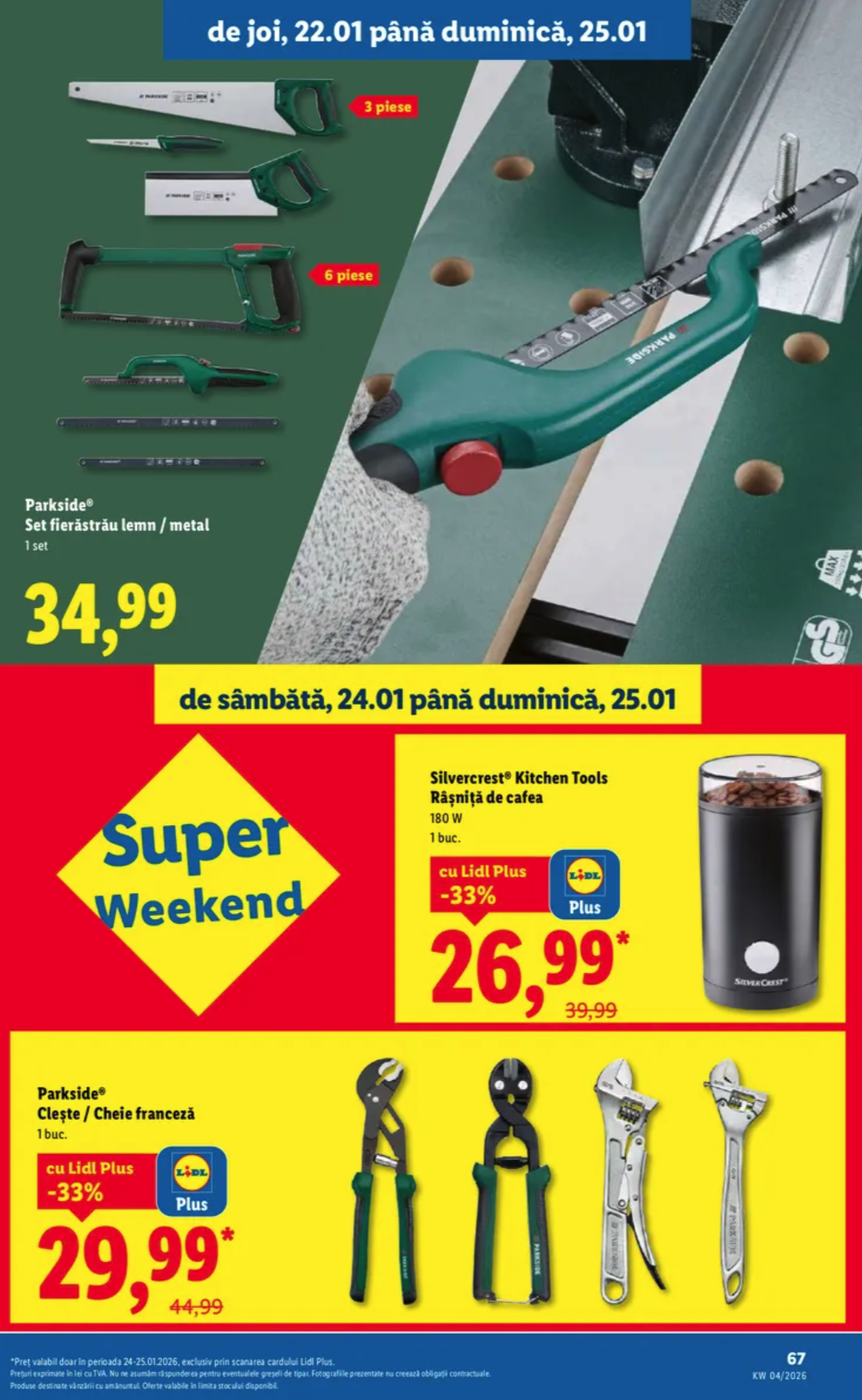 Printre uneltele de mai sus și-a făcut loc și o râșniță de cafera ce costă cu 33% mai puțin pentru cei ce folosesc aplicația LIDL Plus la ieșirea din magazin. Mai găsiți și o cheie franceză sau clește, set de fierăstrău pentru lemn și metal.