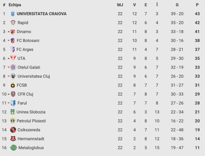 Clasamentul din SuperLigă