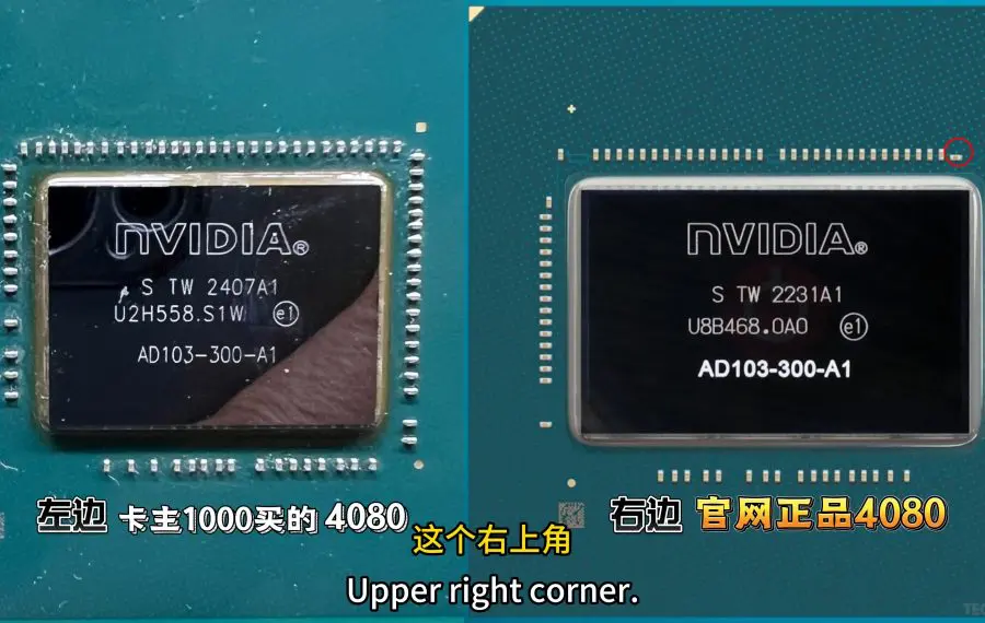 Sub sistemul de răcire masiv nu se afla procesorul grafic AD103, specific arhitecturii Ada Lovelace care propulsează RTX 4080. În schimb, escrocii montaseră un cip GA106, corespunzător generației anterioare Ampere, și mai exact o variantă destinată laptopurilor (GeForce RTX 3060 Mobile). Pentru a masca această discrepanță evidentă, infractorii au recurs la gravarea laser a unor marcaje false direct pe cip, imitând codurile originale Nvidia.