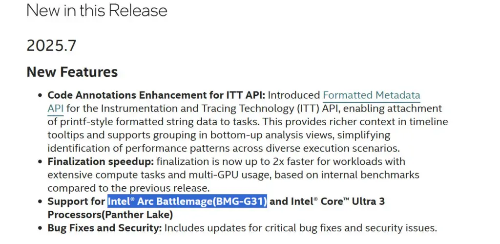 I den senaste uppdateringen för mjukvaran VTune listar Intel officiellt stöd för Intel Core Ultra 3-seriens processorer (Panther Lake) och även Arc Battlemage BMG-G31. Något som kan innebära att Intel förbereder en hel del produkter att visa upp vid CES 2026 som går av stapeln precis efter nyår.