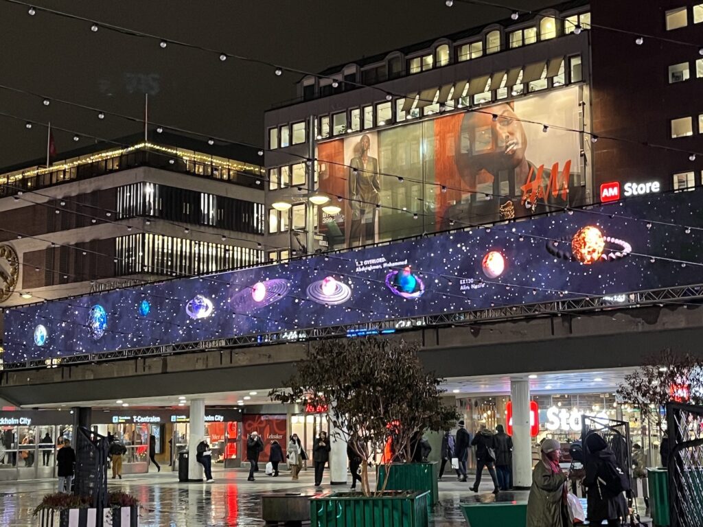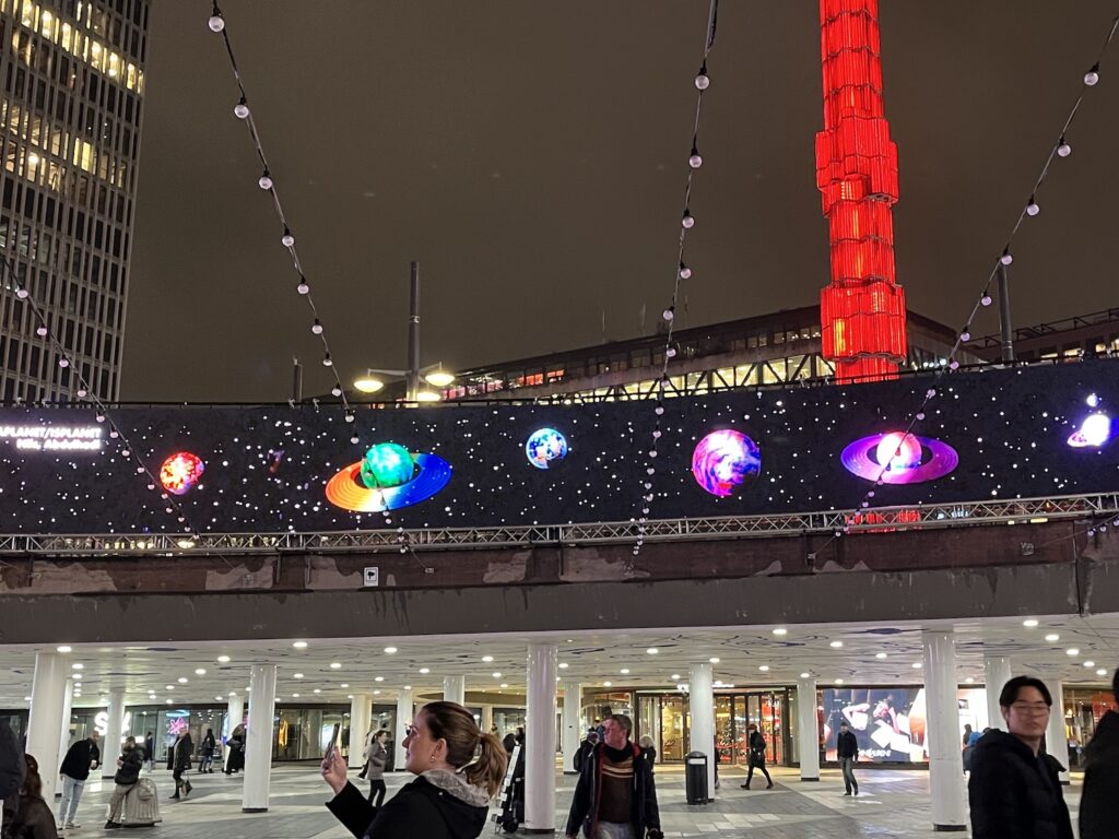 Strax efter klockan fyra på eftermiddagen hölls invigningen med tal och nedräkning innan Sergels torg till slut kunde lysas upp av unika exoplaneter.