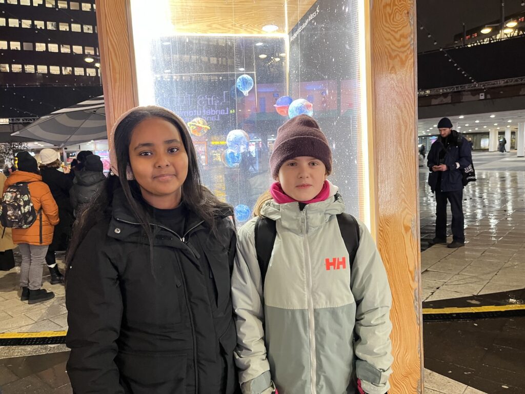 Sara Sayed, 11, och Ingrid Dumitru, 11, är två av eleverna från Husbygårdsskolan som har varit med i projektet. De har tillsammans med sin klass deltagit i workshops om rymden där de bland annat har lärt sig om exoplaneter. Därefter har de skapat egna planeter i lera som studenterna från Hyper Island har scannat in i ett digitalt 3D projekt.