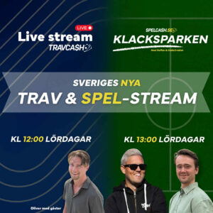 NYHET! Missa inte vårt fullspäckade lördagsuppsnack i våra kanaler! Nu även med ”Klacksparken” som snackar upp det bästa i sportens värld och levererar sprudlande spel. Häng med från 12.00 via Travcash-gruppen på Facebook, Travcash-pagen, vår Youtube-kanal, vår twitch etc (sök på Travcash på valfri plattform).