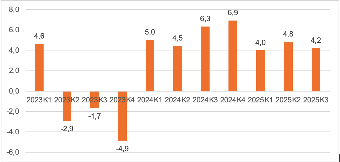 1. SCB, nationalräkenskaper. BNP ökade tredje kvartalet 2025