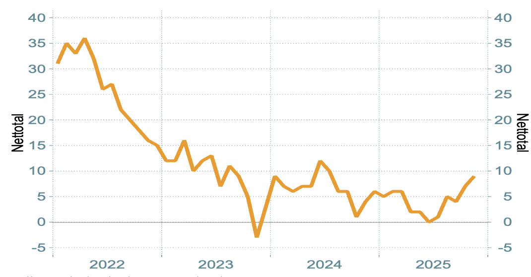 Anm: Nettotal är andelen företag som planerar att höja sina priser minus andelen som planerar att sänka dem.