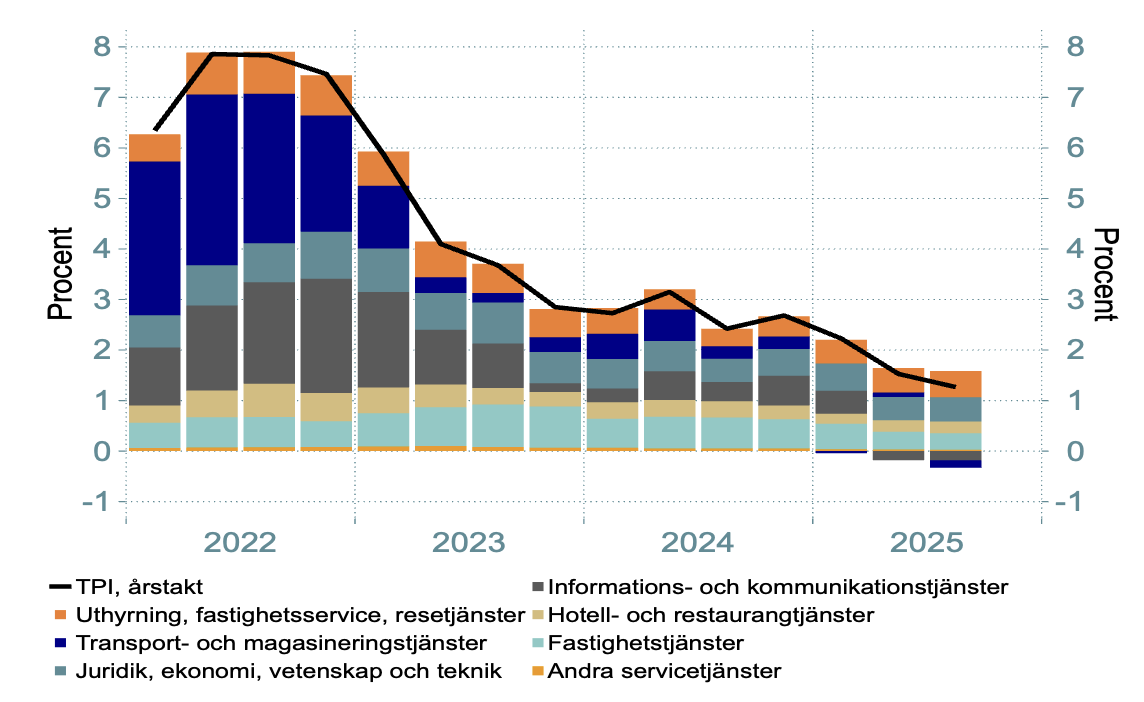 Anm.  Blå linje visar årlig förändring av tjänstepriserna