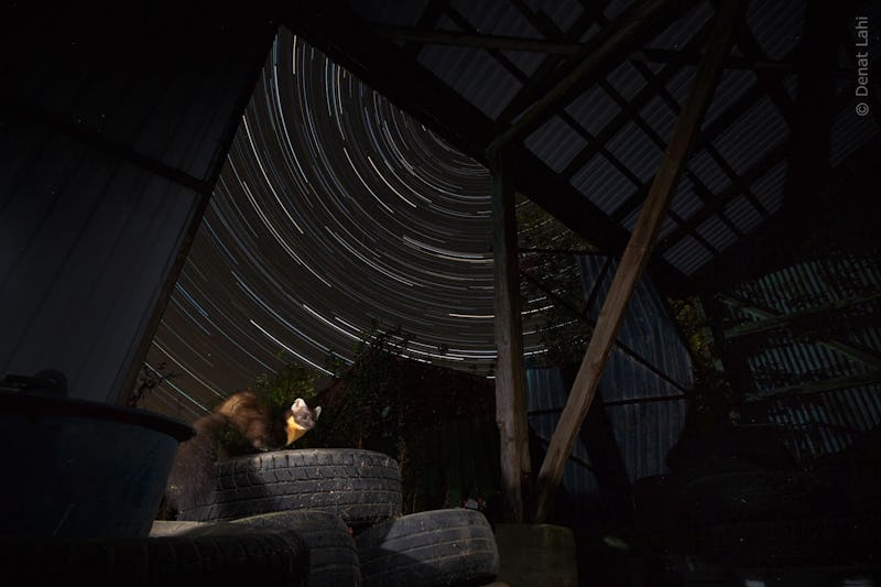 Jag upptäckte ett övergivet industriområde där en skogsmård (Martes martes) regelbundet lämnade spillning, sökte skydd och jagade möss. För att fånga bilden byggde jag ett eget DSLR-kamerafällesystem hemma. Jag satte ihop allt från grunden och det var en lång process. Denna bild är den mest utmanande jag någonsin fångat och togs tack vare hundratals rader kod som styrdes av en rörelsesensor, liten dator och realtidsklocka. För mig visar bilden uthållighet och speglar de utmaningar och möjligheter djuren möter när människor urbaniserar och tar plats. Mården framställs ofta som en skygg skogslevande art, men här lever den ett liv bortom skogen.