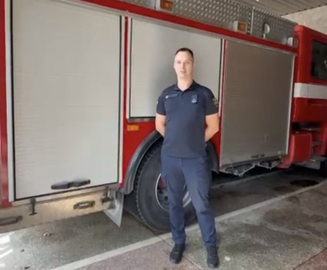 Stationschefen rappoorterar läget och tackar för donationerna – nu är brandbilen hel och redo för insats!