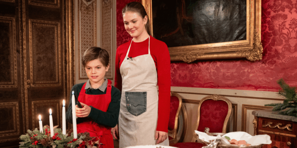 Prinsessan Estelle och Prins Oscar har förberett julens rätter. På menyn finns bland annat köttbullar, prinskorv, julgröt och knäck.