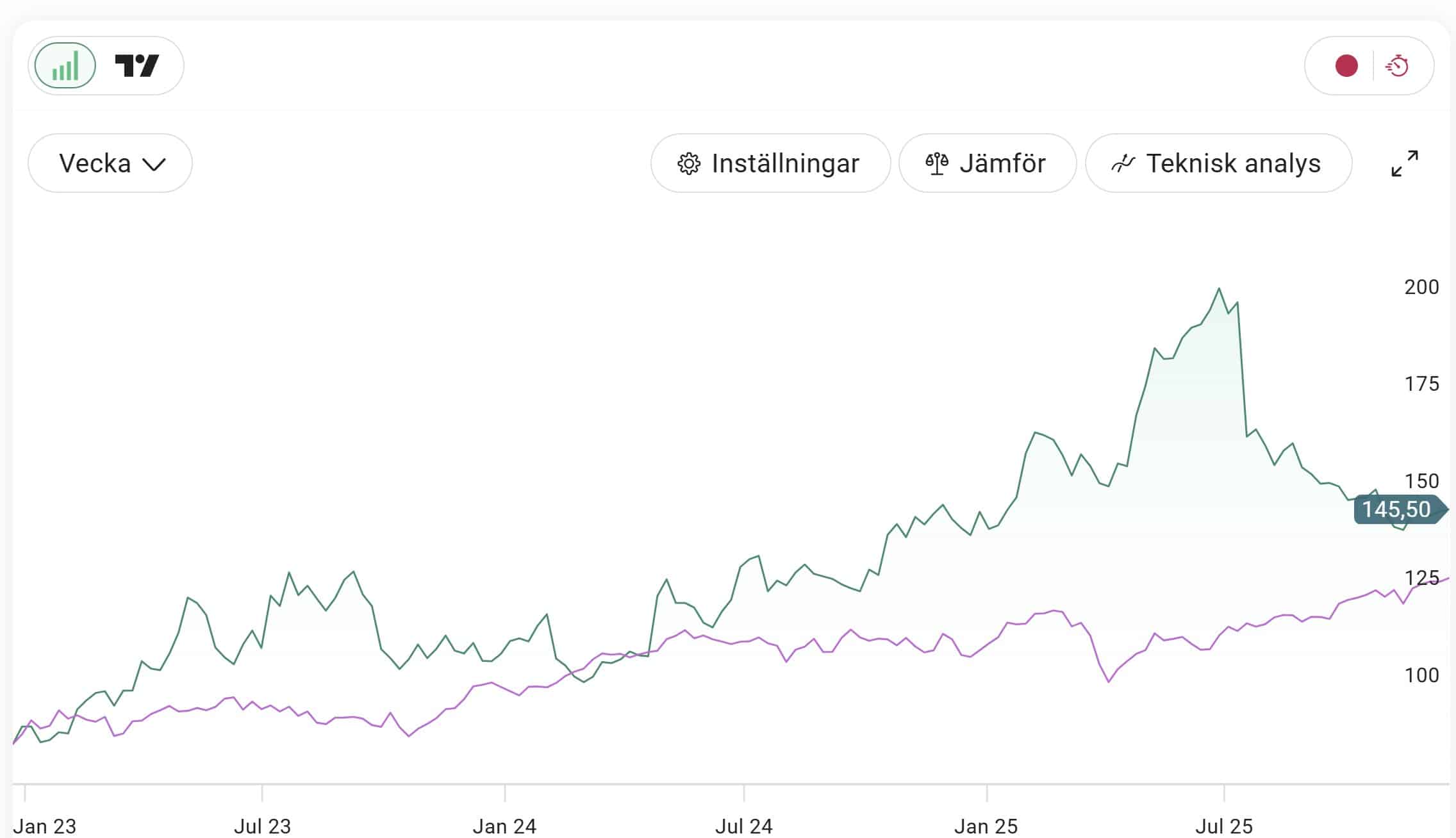 Största fördelen är senaste rapporten som jag tyckte var guld att läsa. Samtidigt har vi en bra bit kvar till ATH (All-time-high). Jag ser både potential till hög kvartalsvis utdelning men också kurstillväxt.