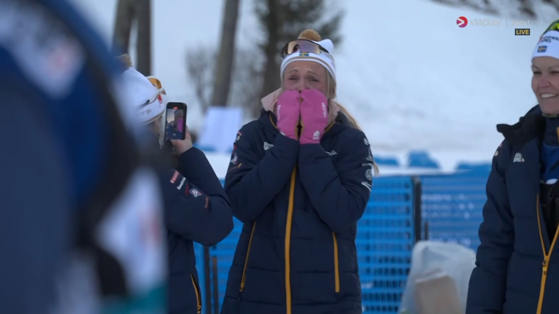 Därmed tog sprintspecialisten Ribom karriärens första pallplats i ett distanslopp i världscupen. Hon grät av lycka när hon hade väntat in det fjärde heatet och insett att pallplatsen var ett faktum.